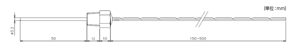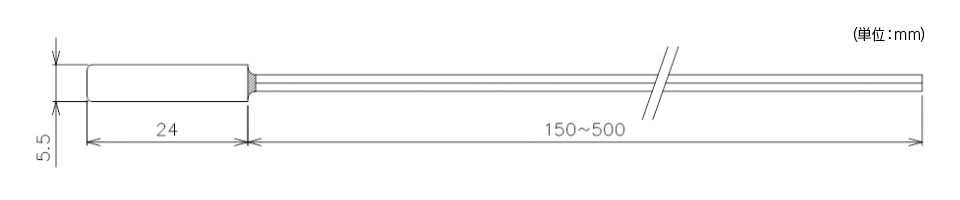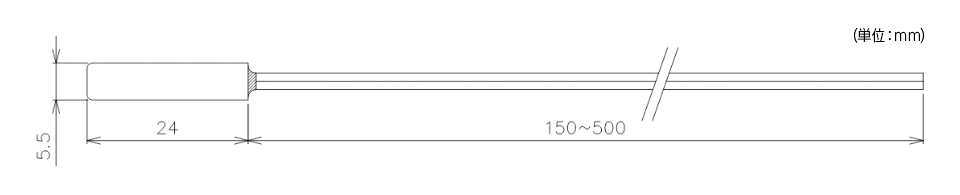 Resistance value R150=10.57kΩ (example) B constant R100/200=4700K (example) Thermal time constant About 10 sec (in stirring water) Operating temperature range -30℃~150℃ Insulation resistance ≥100MΩ at 500VDC Withstand voltage 1000VAC for 1min 構造