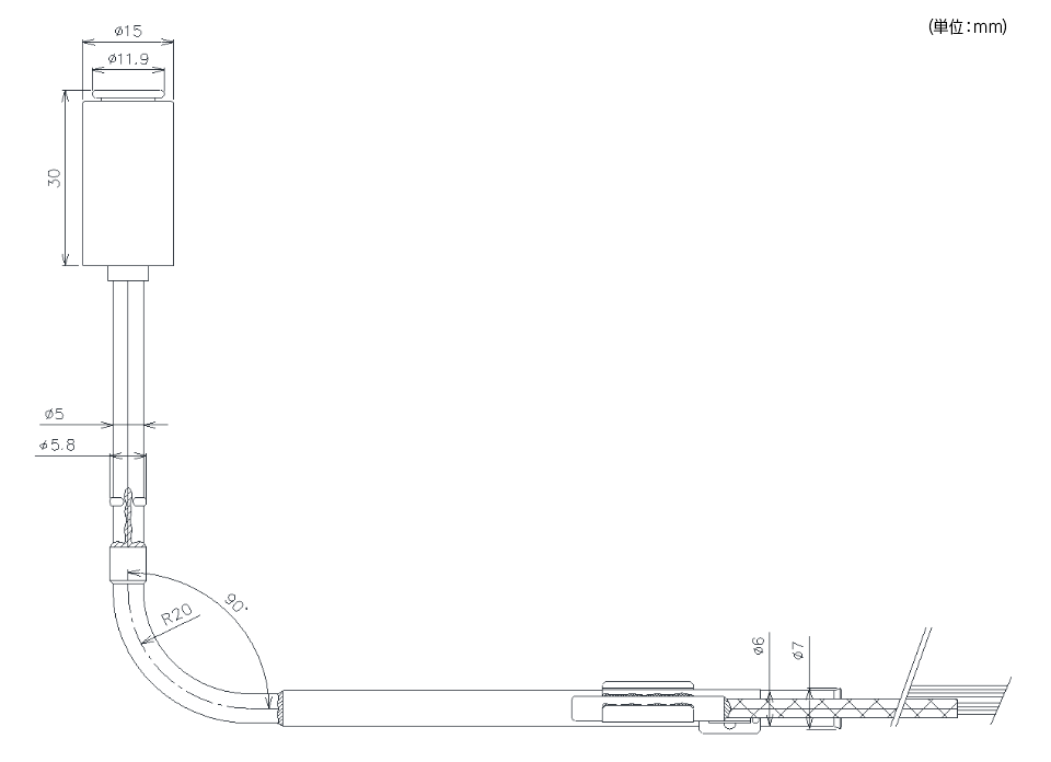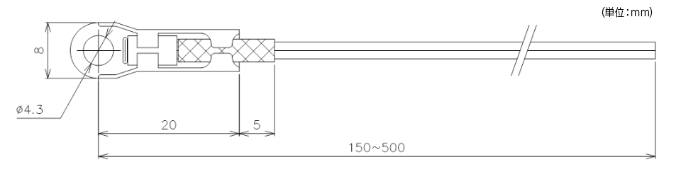 <材質> 感熱部:ステンレス(SUS316L) 電線: シリコーンゴムガラス編組電線